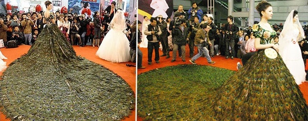 ဒီဝတ္စံုေလးဟာဆိုရင္လည္းလူအမ်ားၾကားမွာ ထူးျခားေနမွာ အမွန္ပါ။ ဒီလိုဝတ္စုံဖန္တီးဖို႔ဆိုရင္ မလြယ္ကူလွပါဘူး။ ဒီဝတ္စုံမွာ ေဒါင္းေမႊး ၂၀၀ေက်ာ္ေလာက္နဲ႔ အေသးစိတ္ဖန္တီးထားတာပါ။